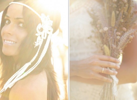 Este precioso vestido es de la próxima colección y en cuanto lo vio, dice, "no quiso mirar ningún otro". Además, confiesa que "lo mismo le pasó" con los zapatos y con el diseño de la banda del pelo. Raquel del Rosario hizo su propio ramo de boda con flores silvestres, que como ella misma explica, recogió el día anterior mientras paseaba por el campo.