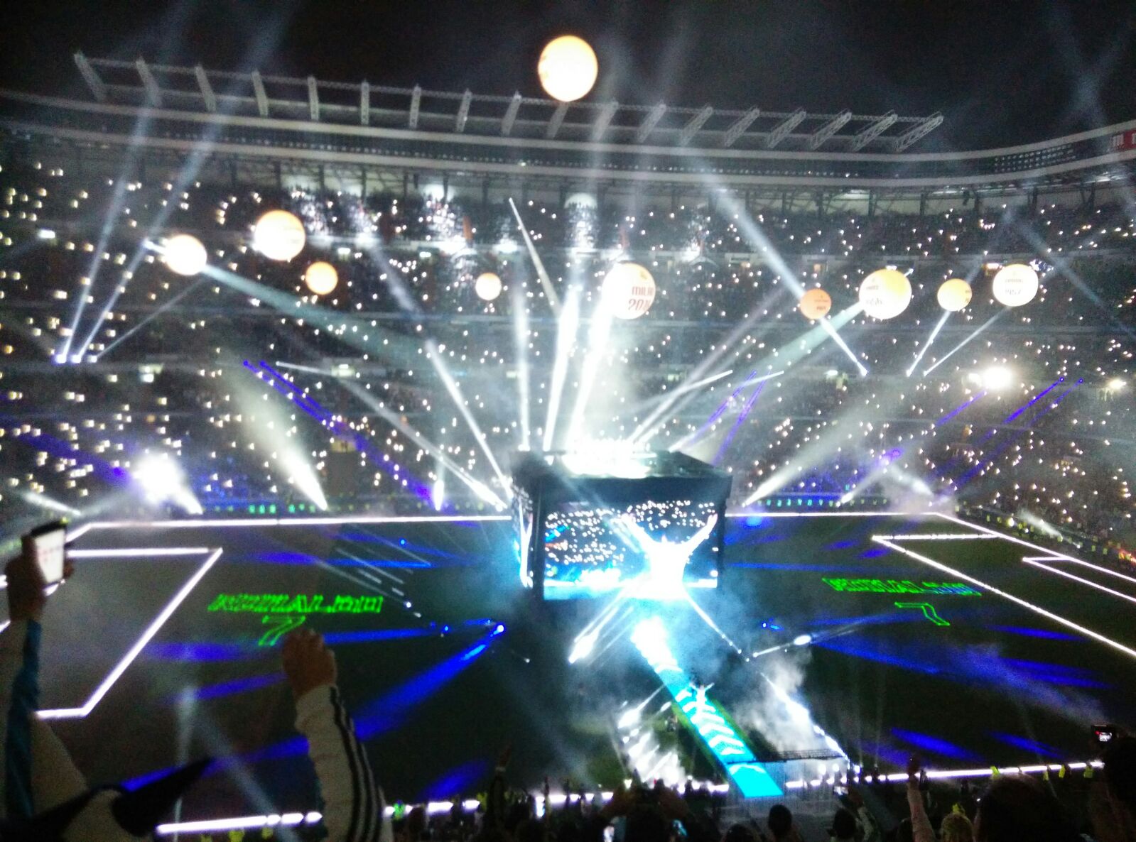 En terreno de juego sólo había una caja. Eso sí, era gigante. La misma que se utilizó para ver la final de la Champions League. Cuatro pantallas que también servían como plataforma donde iban subiendo uno a uno todos los protagonistas que tenían una entrada al estadio al estilo de Hollywood. Al frente del tunel de vestuario había una cascada de agua que combinada con humo y unos focos, reflejaba el nombre y el dorsal de cada jugador. El speaker hacía sonar el nombre del jugador al ritmo de Seven Nation Army del grupo The White Stripes. Eran autenticas estrellas del Rock.