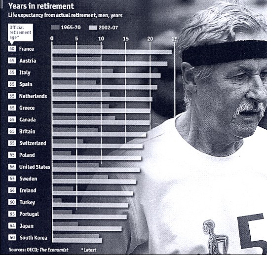 Esperanza de vida de los jubilados en la OCDE (Fuente: The Economist)
