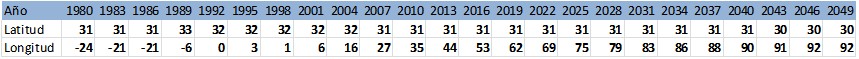 También ha llamado la atención el estancamiento de la latitud, esto es, los promedios se sitúan cada año algo por encima del Trópico de Cáncer. Si bien Quah matiza el dato en función de la proyección cilíndrica que ejerce algún sesgo aparente, la conclusión es que no hay variación real apreciable en la latitud. La implicación económica es que no se han aliviado las diferencias Norte-Sur en las últimas tres décadas ni parece, según este estudio, que vayan a hacerlo en las próximas.