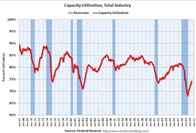 Mientras, la utilización de la capacidad industrial en EEUU está en mínimos de los últimos 40 años.