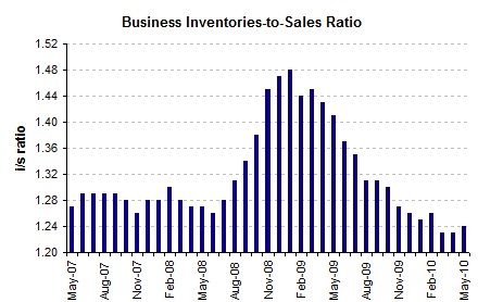 Los inventarios de las empresas subieron un 0,1% en mayo, después de que el volumen de ventas bajara un 0,9% -las ventas minoristas cayeron un 1% en mayo y otro 0,5% en junio-.