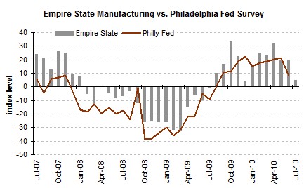 Por el momento, este dato apunta a una creciente desaceleración económica, tal y como reflejan otros indicadores relevantes. Así lo muestra la encuesta Empire State de producción -un dato inferior a 0 implica contracción económica-.