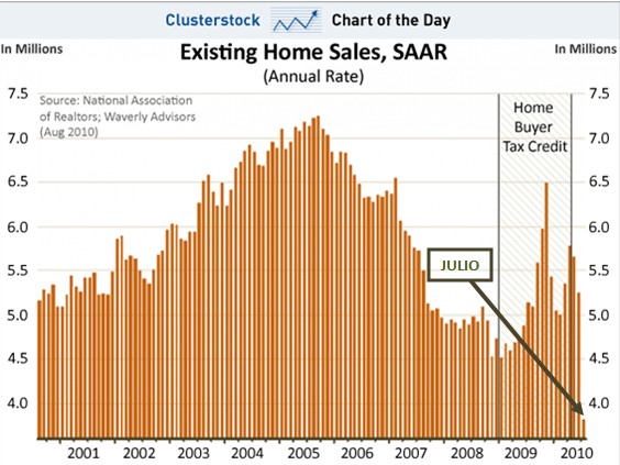 Si en marzo la venta de nuevas viviendas se disparaba en EEUU, por acercarse la fecha límite para lograr un subsidio (tax credit) a la compra de viviendas, el pasado mayo y julio aconteció justo lo contrario.