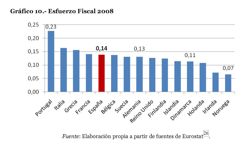 Sin embargo, España está en los primeros puestos de la tabla de "esfuerzo fiscal", junto a Portugal, Grecia o Italia.
