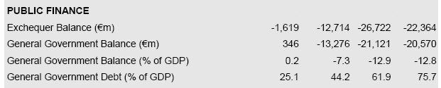 ¿Problema? El Ejecutivo irlandés comienza a dudar de su capacidad para equilibrar las cuentas públicas en 2012, tal y como exige Bruselas. En concreto, si bien las previsiones oficiales elaboradas el pasado abril avanzaban un déficit público del 10,75% para 2009 y 2010, la inexistencia de recuperación económica ha elevado tales cifras hasta el 13% del PIB para ambos ejercicios, según las últimas estimaciones.