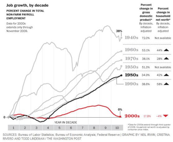 Según datos publicados por el Washington Post, la economía estadounidense ha acabado la primera década del nuevo milenio peor de lo que estaba a su inicio.