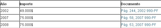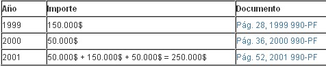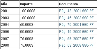 La información anual del pago de impuestos de dichas filiales se encuentra en los denominados IRS Form 990 (Return of Organization Exempt From Income Tax). En dichos documentos oficiales aparecen detalladas algunas de dichas donaciones a lo largo de los últimos años.