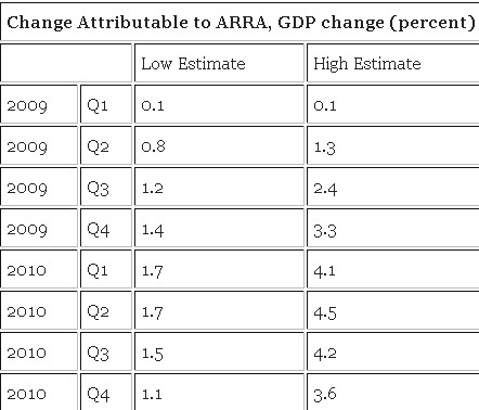 Por su parte, la Oficina Presupuestaria del Congreso (CBO, por sus siglas en inglés) confirma que el crecimiento de EEUU registrado en los últimos meses depende, en gran medida, del aumento del gasto público. En concreto, el plan de estímulo de Obama (American Recovery and Reinvestment Act -ARRA-) impulsó el PIB real (una vez ajustada la inflación) entre un 1,7% y un 4,5% en el segundo trimestre, y redujo la tasa de desempleo entre 0,7 y 1,8 puntos porcentuales al ocupar a entre 1,4 y 3,3 millones de personas.