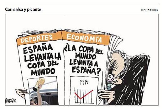 El periódico que dirige Amador Ayora aclara, además, que "la victoria del Mundial sólo tendrá un efecto pasajero sobre la crisis". Claro, es lo que sucede con las cortinas de humo, que durante un tiempo no permiten ver la realidad pero que finalmente se desvanecen y dejan ver la crudeza de los hechos: España es un país intervenido que está siendo rescatado por las autoridades monetarias europeas con la ayuda y el respaldo del Fondo Monetario Internacional (FMI).