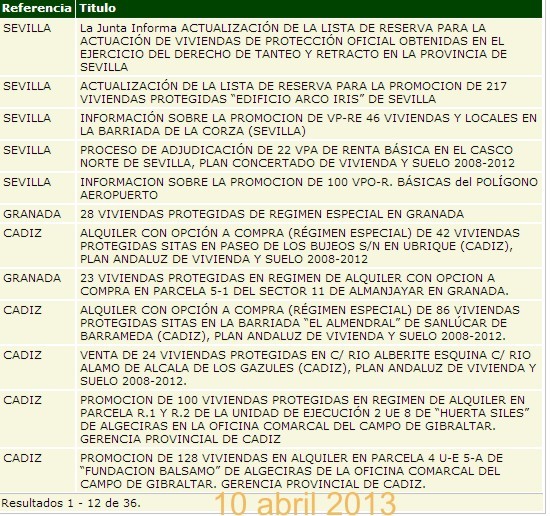 Sin embargo, la cifra de más de 5.000 iviendas disponibles surgía de la consulta de datos de la web de la empresa pública dependiente de Fomento y Vivienda. En la web se ofertaban esas viviendas y se dejaba claro que «desde esta página podrá consultar las promociones de viviendas protegidas en venta que la Empresa Pública de Suelo pone a disposición de los interesados en diversas poblaciones de Andalucía». Esas viviendas se podían consultar en internet por provincias y municipios.