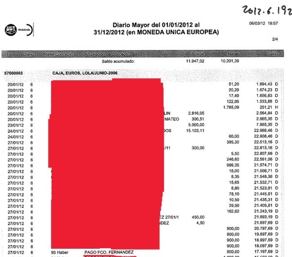 Además, al menos durante los meses de enero y febrero de 2012 segun los documentos que obran en poder de Libertad Digital y según las fuentes consultadas por este diario, todos los meses Fernández Sevilla ha cobrado una cantidad limpia, donde no entran gastos de ningún tipo, de 900 euros.