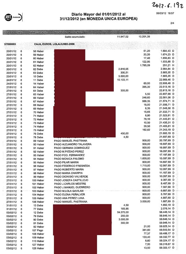 En el siguiente documento, aparecen todos los altos cargos de UGT Andalucía que cobraban sobresueldos mensuales: