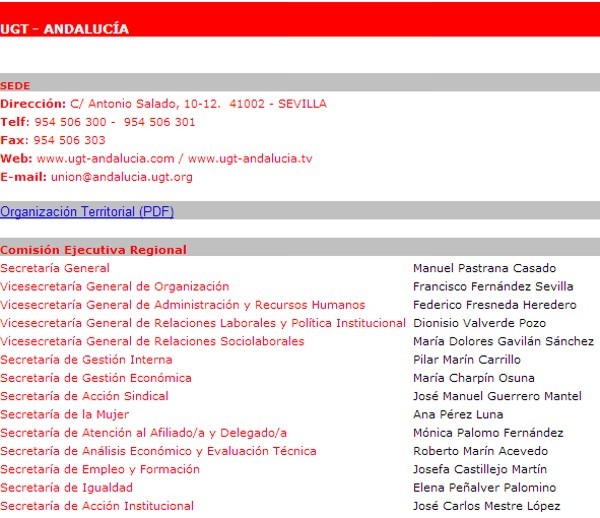 Puede puntearse fácilmente que todos y cada uno de los miembros de la Comisión Ejecutiva de UGT-A hasta antes del Congreso del pasado mes de mayo, que exponemos a continuación y participaban de los sobresueldos por actividad sindical, dietas y kilómetros falsos, tienen trato especial en Hacienda.