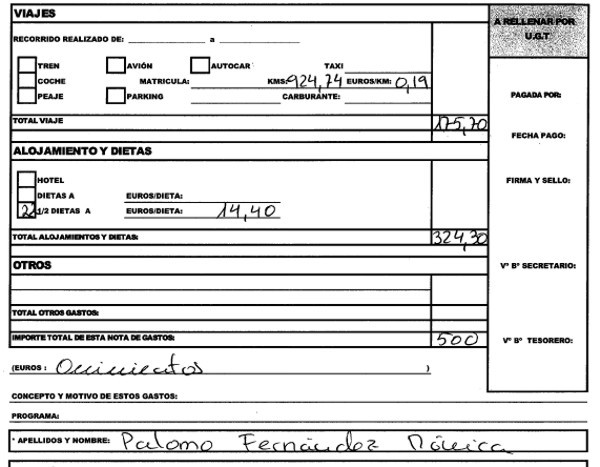 Como se demuestra en el siguiente cuadro, todo era un sistema perfectamente organizado para, falseando kilómetrajes, dietas y actividad sindical, llegar al dinero que ellos mismos decidieron tenían que cobrar mensualmente.