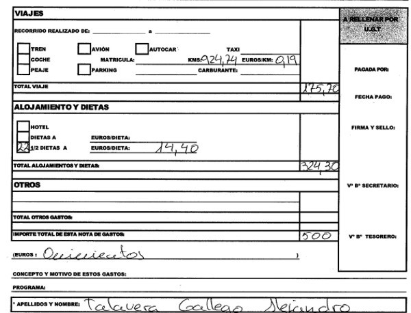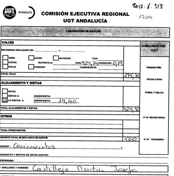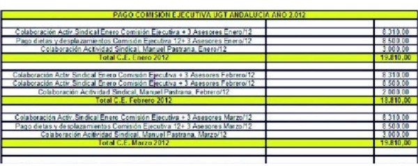 Lo primero que puede comprobarse es que el hasta mayo secretario general de UGT Andalucía, además de cobrar los 3.000 euros extra por su actividad sindical, cobraba además los 900 que correspondían a cada miembro de la Ejecutiva (400 por actividad sindical y 500 por diferentes gastos acordados), que cobraban todos lo mismo, salvo dos casos, Mónica Palomo y Federico Fresneda.