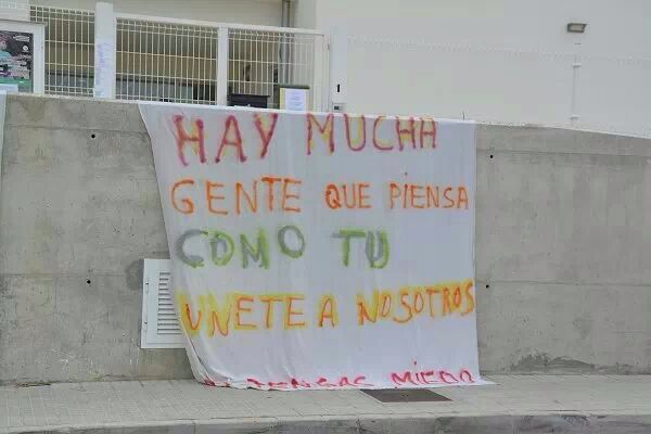 Así se anuncia en algunas pancartas, como las colgadas en el centro Rodamilan, en donde se anima a todo aquél que no esté de acuerdo a expresar su malestar. "Hay mucha gente que piensa como tú. Únete a nosotros. No tengas miedo".