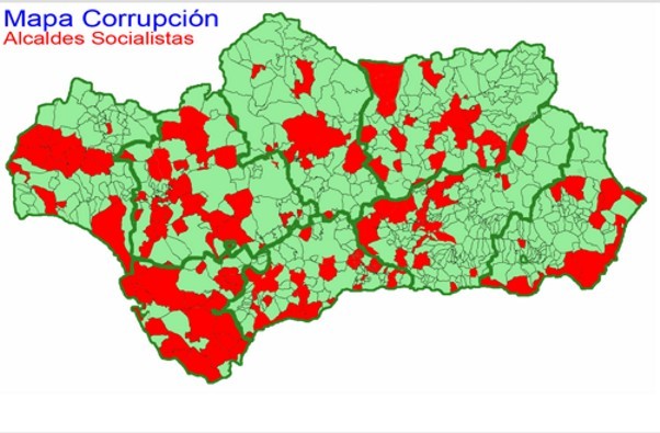 El mapa de la corrupción en Andalucía afecta a 171 alcaldes socialistas. De los 171, 117 están imputados y 47 han sido condenados y a ello se suman aquellos casos que permanecen abiertos o en vías de investigación. Los populares elevan el número de encausados vinculados al PSOE andaluz a más de 400 cargos entre directivos, regidores, ediles, sindicalistas y demás.