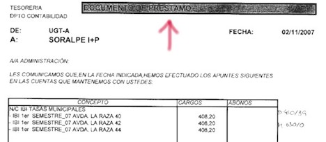 préstamo – vaso comunicante habitual – entre UGT y Soralpe. Este documento lo demuestra.