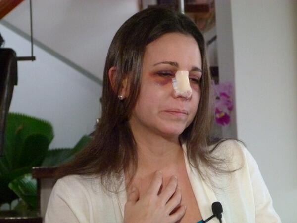 "El Gobierno de Nicolás Maduro, sabiéndose ilegítimo en su origen, porque los venezolanos sabemos que ganó Henrique Capriles y que no se quiso respetar, la respuesta del régimen ha sido radicalizarse", explica Machado. Y es que la diputada, -la más votada del país- ha sufrido en sus carnes la violencia que se desencadenó tras las eleciones. Machado, junto a otros diputados de la oposición, fue agredida por los parlamentarios chavistas el pasado 30 de abril en la Asamblea Nacional.