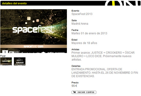 Pero a los organizadores la trágica fiesta de Halloween se les ha olvidado mencionar otro macroevento, el Space de Año Nuevo. Es todo un referente internacional en este tipo de celebraciones masivas, el "mayor festival del año" según los expertos y la propia Diviertt. El festival está previsto para el 1 de enero de 2013 en el Madrid Arena, miles de jóvenes tienen en su poder las entradas desde hace varios meses, los mejores DJs del mundo han confirmado su asistencia y la empresa organizadora, de momento, mantiene su celebración.
