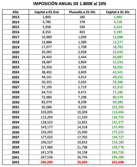 Bueno, la cosa mejora. La bola de nieve comienza a funcionar y el saldo final asciende ya a 88.205€. Un 63% más que la alternativa de potenciar el plumaje del edredón.