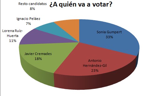 - Antonio Hernández-Gil (actual decano) lograría el 23%,.