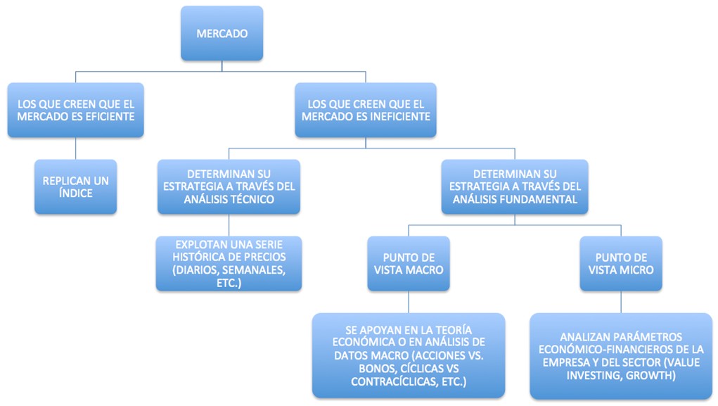 Dentro de los inversores que creen que es posible darle una colleja al mercado, podemos distinguir dos grandes bloques. Por un lado, los inversores que operan con el convencimiento de que el mercado es tremendamente ineficiente y que la propia cotización del valor -a la vista de todos- dibuja patrones que pueden ser explotados de forma consistente mediante el análisis técnico. Por otro lado, tenemos a aquellos inversores que, aun compartiendo la idea de que el mercado es ineficiente, creen que sólo puede obtenerse una ventaja sostenible sobre el mercado mediante el análisis de parámetros macro y microeconómicos; también públicos, como el caso de los precios, pero que requieren de un grado de especialización importante para ser manejados. Es el llamado análisis fundamental.