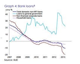 De acuerdo al último informe del BCE en el que se examina la reestructuración de la banca tras la ayuda financiera recibida, los bancos que menos prestan son los nacionalizados y más débiles, mientras que son las pymes los demandantes de crédito más castigados. Pero en general, es un problema tanto de la oferta (bancos) como de demanda (empresas y familias) de crédito.
