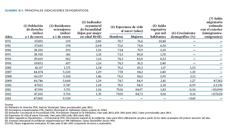De hecho, en la hoja dedicada a la demografía, en el que aparecen esos datos de estancamiento en el gráfico superior, el CES hace referencia a que la tendencia más destacable sigue siendo "el envejecimiento de la población, impulsado por los avances de la esperanza de vida, una natalidad que ha acelerado su descenso en el contexto de la crisis". Y en lo que se refiere a la esperanza de vida, destaca que es "un indicador especialmente positivo para España", situándose bastante por encima del promedio de la UE.