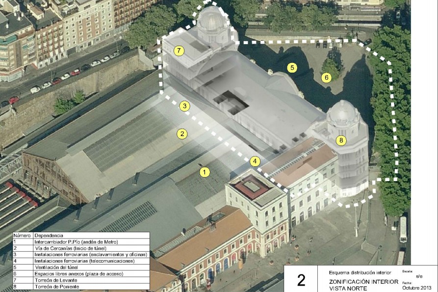 Hay que dejar claro que lo que va a alquilar la compañía ferroviaria no es toda la construcción de la Estación de Príncipe Pio, sino la edificación de la parte derecha. La antigua Estación del Norte se divide en tres partes: