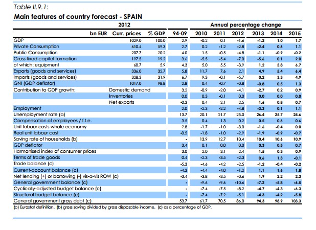 Respecto al déficit, Bruselas calcula que el país no cumplió en 2013 con el objetivo de déficit previsto, del 6,5%. Según el texto, la Comisión dice que España cerró 2013 con un agujero fiscal del 7,2%, cifra a la que habría que restarle al menos medio punto porque incluye el rescate bancario. Asimismo, estima que el déficit rondará el 5,8% este año, el dato exigido por la UE.