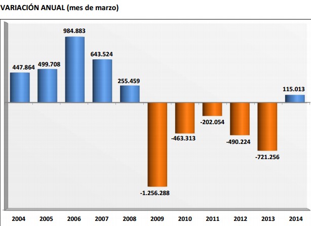 España acaba de registrar el mejor mes de marzo en materia laboral desde que comenzó la crisis. Lo más relevante, sin embargo, es que se confirma el punto de inflexión que avanzó Libre Mercado. La destrucción de empleo tocó fondo en 2013, de modo que la ocupación se estabilizó el pasado enero, comenzó a repuntar en febrero y, ahora, en marzo se ratifica la creación neta de puestos de trabajo. Es decir, España acumula ya dos meses consecutivos con aumento interanual de afiliados a la Seguridad Social, lo cual no sucedía desde la primera mitad de 2008.