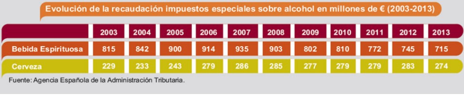 En materia de recaudación tampoco se equivocaron ya que, según los datos de la Agencia Tributaria, en 2013 los ingresos del Estado por impuestos especiales aplicables a las bebidas espirituosas fueron de 715 millones de euros, un 3,9% menos que en 2012, a pesar de haber subido los impuestos. Así, la recaudación por los destilados se sitúa a niveles de 1999, cuando la carga fiscal era mucho más baja.