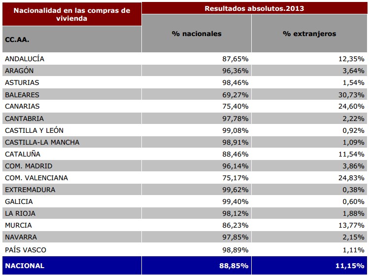 El estudio destaca el cambio de perfil del comprador foráneo de vivienda, de forma que mientras que en la actualidad el grueso corresponde a nacionalidades que adquieren una casa con fines turísticos, antes del estallido de la crisis correspondía a extranjeros que se asentaban laboralmente en España. Asimismo, el informe subraya que el "intenso descenso" que el precio de la vivienda ha registrado en España desde el inicio de la crisis ha convertido "en una gran oportunidad" comprar una vivienda "a aquellas nacionalidades menos afectadas por la crisis económica".