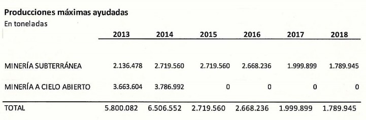 En cuanto al volumen total previsto en el Plan General de la Minería 2013-2018, el montante de subvención destinado sólo al pago por tonelada de carbón en minería subterránea (la principal) asciende a 255,4 millones de euros.