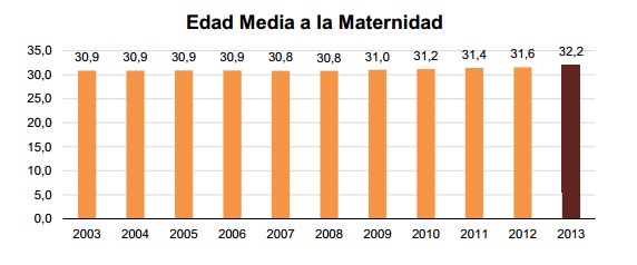 Así, el número de mujeres entre 15 y 49 años ha bajado desde 2009 debido a que llegan a ese rango de edades generaciones menos numerosas (nacidas durante la crisis de natalidad de los 80 y primera mitad de los 90), al menor aporte de la inmigración exterior y al mayor número de emigraciones al exterior durante estos últimos años. Además, la edad media de la maternidad se ha situado en los 32,7 años entre las españolas y en 29,7 años entre las extranjeras.