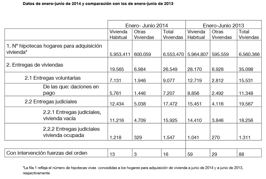 Las entregas de vivienda por impago de hipoteca se situaron en 26.549 en el primer semestre del año, lo que supone un 24,4% menos respecto al mismo período de 2013, según los datos publicados este jueves por el Banco de España.
