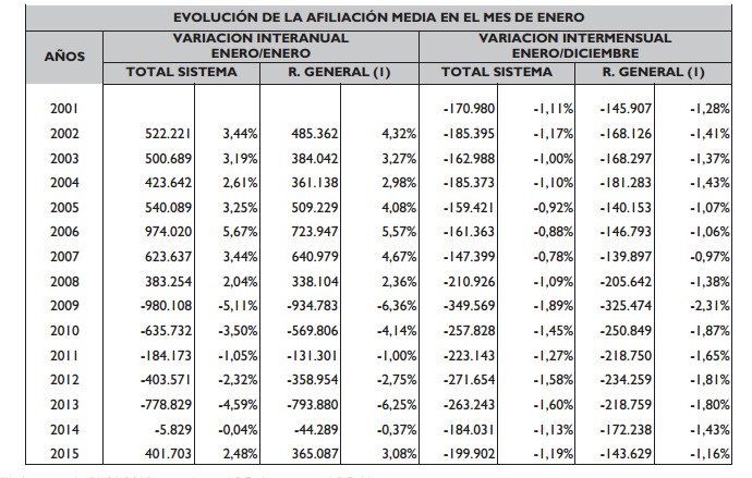 Eso sí, sin descontar la finalización de la campaña Navideña, los afiliados a la Seguridad Social caen en enero en 199.902 personas y se sitúan en 16.575.312 ocupados. En términos interanuales, los datos del Ministerio de Empleo permiten mantener el optimismo ya que registra la primera creación interanual de empleo un mes de enero desde enero de 2008, con 401.703 cotizantes más.