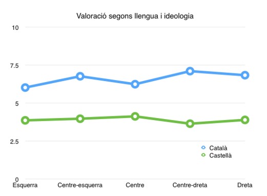 No hay ni un campo donde la muestra que considera que su lengua propia es el catalán valora peor la gestión, a diferencia de lo que sucede en el caso del castellano, donde la nota cae en casi todos los ámbitos. "La brecha más grande tiene que ver con el estado del autogobierno, pero también es significativo en cuanto a pilares del estado del bienestar", aclara Lizoain.