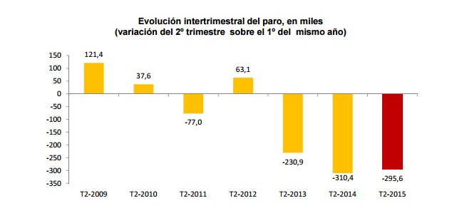 Más empleo y menos paro: la Encuesta de Población Activa (EPA) del segundo trimestre cumple con las previsiones y da otro respiro al mercado laboral. A primera hora de la mañana, el Instituto Nacional de Estadística (INE) publicaba la tan esperada encuesta que revelaba que el paro bajó en 295.600 personas con respecto al primer trimestre.