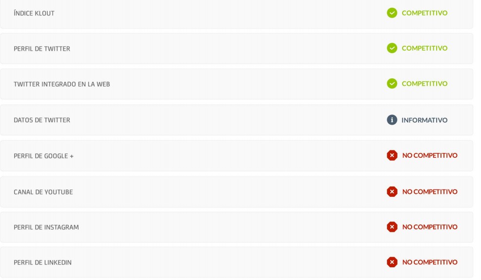 Así, gracias a las recomendaciones del informe, que otorga una nota final del 0 a 10, las pymes españolas pueden averiguar cuáles son los puntos fuertes y débiles de su presencia en las redes sociales. En el siguiente ejemplo puede verse.