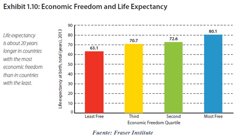 Además, cuanto más abierta y libre sea la economía de un país, mayor será la esperanza de vida de sus habitantes. Solo hay que ver dónde hay más esperanza de vida: ¿en Suiza o en Venezuela? ¿En Australia o en Corea del Norte?