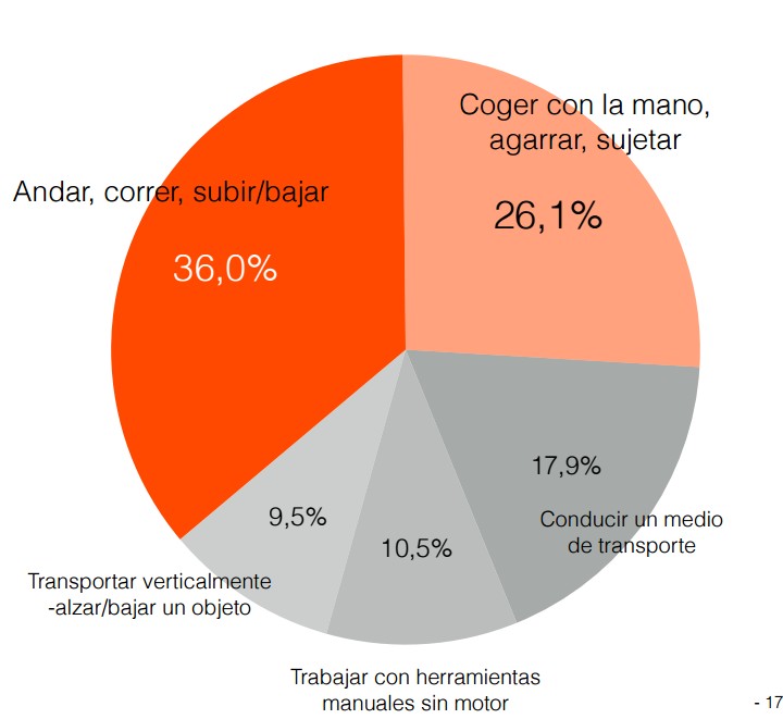 Sobre la tarea que estaba realizando el trabajador en el momento del accidente, las acciones más repetidas son andar o correr (36%) y los lugares más habituales donde se suceden los accidentes son los públicos (28%)