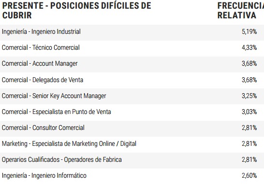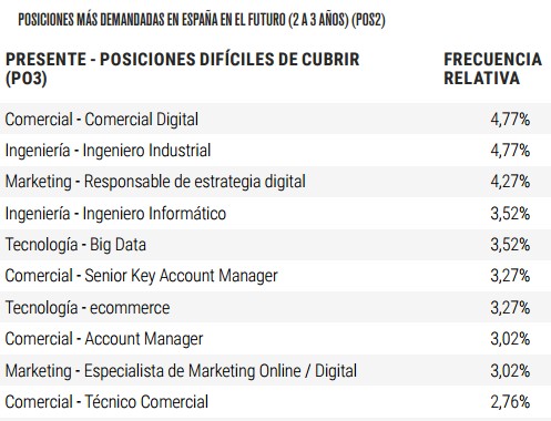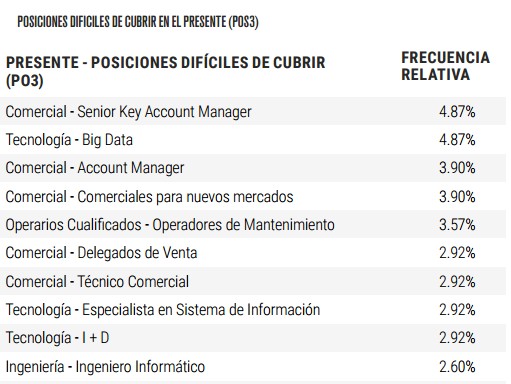 Respecto a los puestos de trabajo que las empresas no logran cubrir, destacan los expertos en Big Data y los Senior Key Account Manager (los que gestionan las cuentas clave).