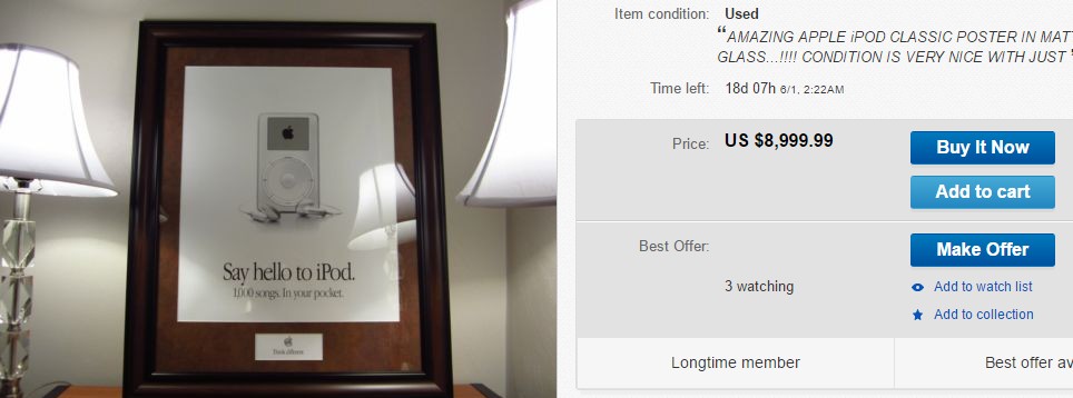 Terapeak, una compañía que rastrea los precios de objetos de colección en eBay, publicó un estudio sobre los precios de los productos de Apple tras conocerse la noticia del cese de fabricación de iPod. Se llegó a vender un iPod classic edición U2 en su embalaje original por casi 9.000 euros.