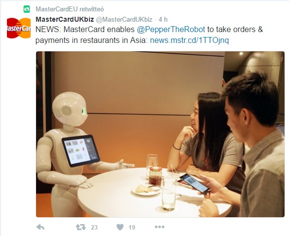 "Estamos deseando dar la bienvenida a Pepper a la familia Pizza Hut", dijo Vipul Chawla, director gerente de Pizza Hut Asia. KFC ya abrió un restaurante regentado por robots en Shanghai y desde Wendy’s están haciendo frente a la subida del salario mínimo con el self-service. Los robots están empezando a tener una rol muy importante en la industria alimentaria.