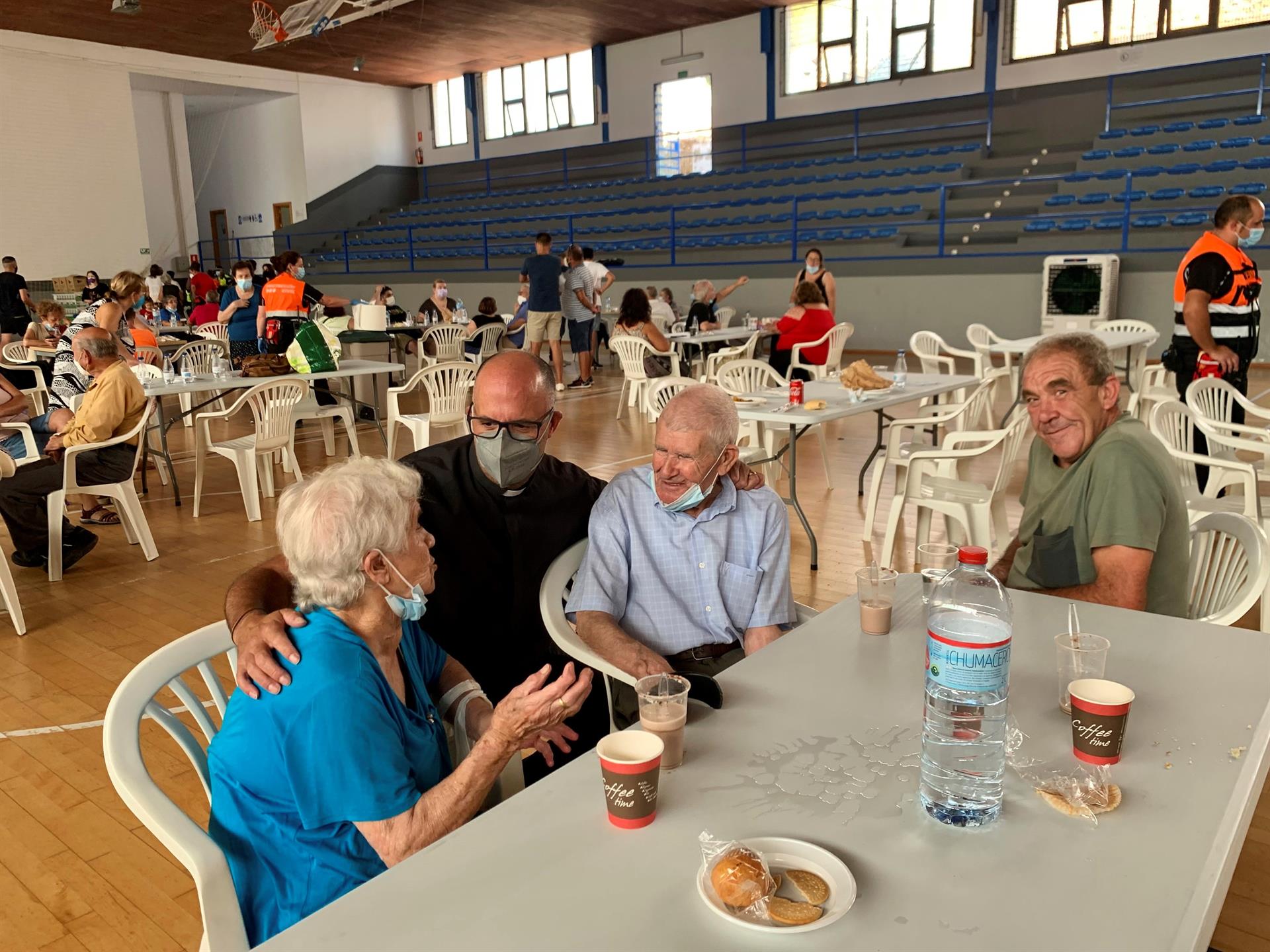 Voluntarios reciben en el Polideportivo "El Fuerte" de Ronda, a los ancianos desalojados de una residencia de mayores del municipio de Faraján (Málaga) por el incendio de Sierra Bermeja, en el sudoeste de la provincia de Málaga.