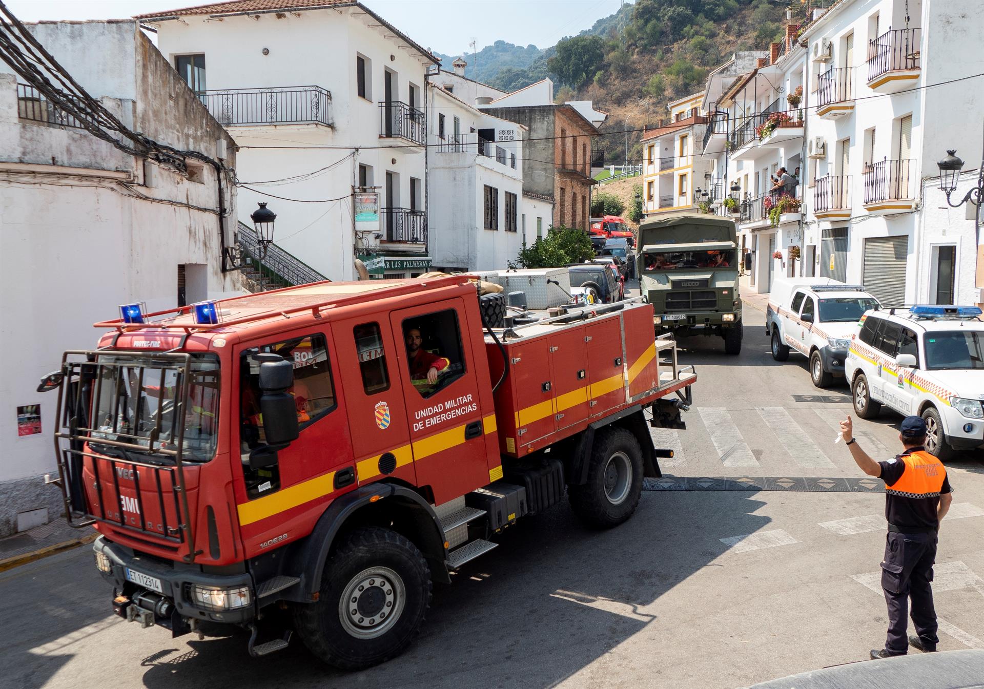 Efectivos de la UME a su llegada a Algatocín (Málaga), para ayudar en las labores de extinción del incendio de Sierra Bermeja.