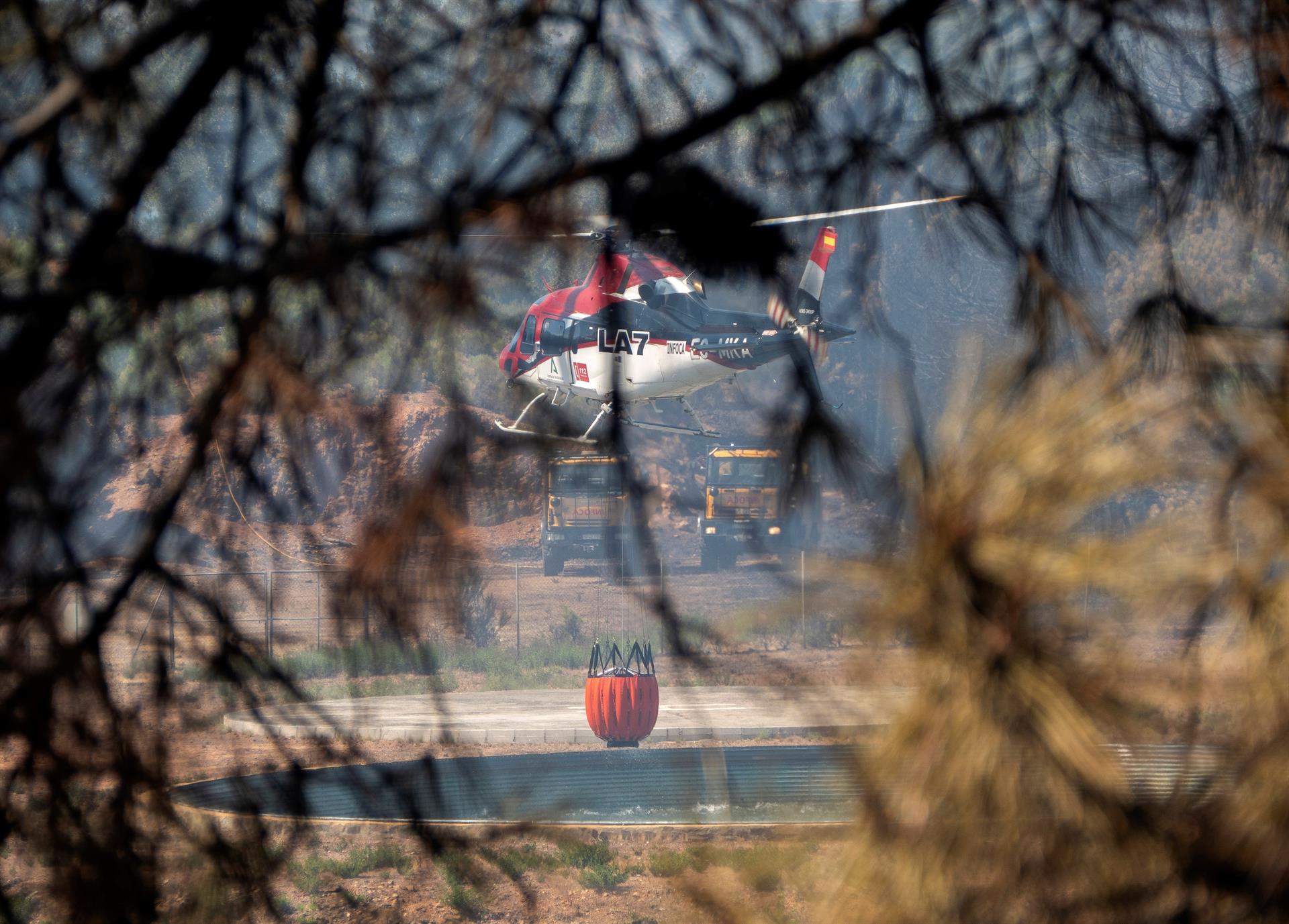 Un helicóptero trabajando en el incendio forestal de Sierra Bermeja que ha afectado a cuatro municipios de la provincia de Málaga -Estepona, Benahavís, Jubrique y Genalguacil.